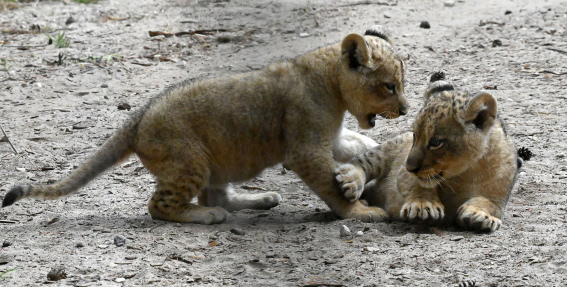 Zoodārzā informēja, ka lauvu puika un lauvu meitene šobrīd attīstās atbilstoši vecumam un labos laika apstākļos daudz laika pavada apmeklētājiem pārredzamajā pastaigu laukumā.