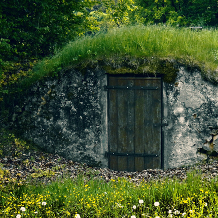 Ja nav pagraba, viens no risinājumiem varētu būt arī ātri uzbūvēts, labi nosiltināts šķūnis ar ventilācijas lūku (vai vairākām), kuras sāni ir apbērti ar zemi. Sānus var apzaļumot, iegūstot reizē vietu krājumu uzglabāšanai un interesantu vides objektu dārzā.