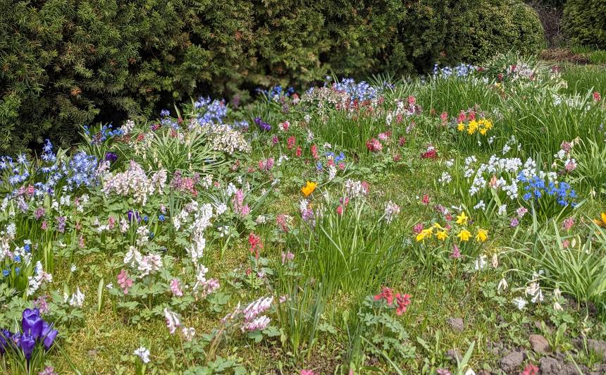 Aprīļa otrajā pusē, kad dienas un zeme pamazām iesilst un dārzs ir atbrīvots no pērnajiem lakstiem, var sākt augus barot. Katram dārzniekam ir savs piegājiens. Es gadiem piekopju pavisam vienkāršu mēslošanas taktiku. Speciālais mēslojums tiek tikai rododendriem. Rozes palutinu ar satrūdējušiem zirga kūtsmēsliem, visiem pārējiem – skujkokiem, krūmiem, tai skaitā hortenzijām, kā arī ziemcietēm, graudzālēm un sīpolpuķēm – tiek universālais pavasara kompleksais granulētais mēslojums.