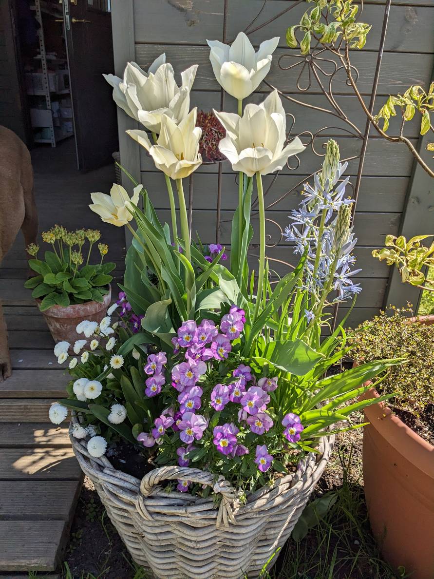 Atkarībā no laikapstākļiem – dažreiz jau marta beigās, bet visbiežāk aprīļa sākumā – stādu pavasara kompozīcijas kastēs, podos, grozos.