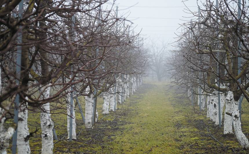 Uz nesasalušas zemes no jauna uzkritušais sniegs atkal jāpieblīvē ap koku stumbriem. Tas traucēs pelēm pārvietoties zem sniega un mazinās iespēju, ka saknes zem siltās sniega segas izsūt.