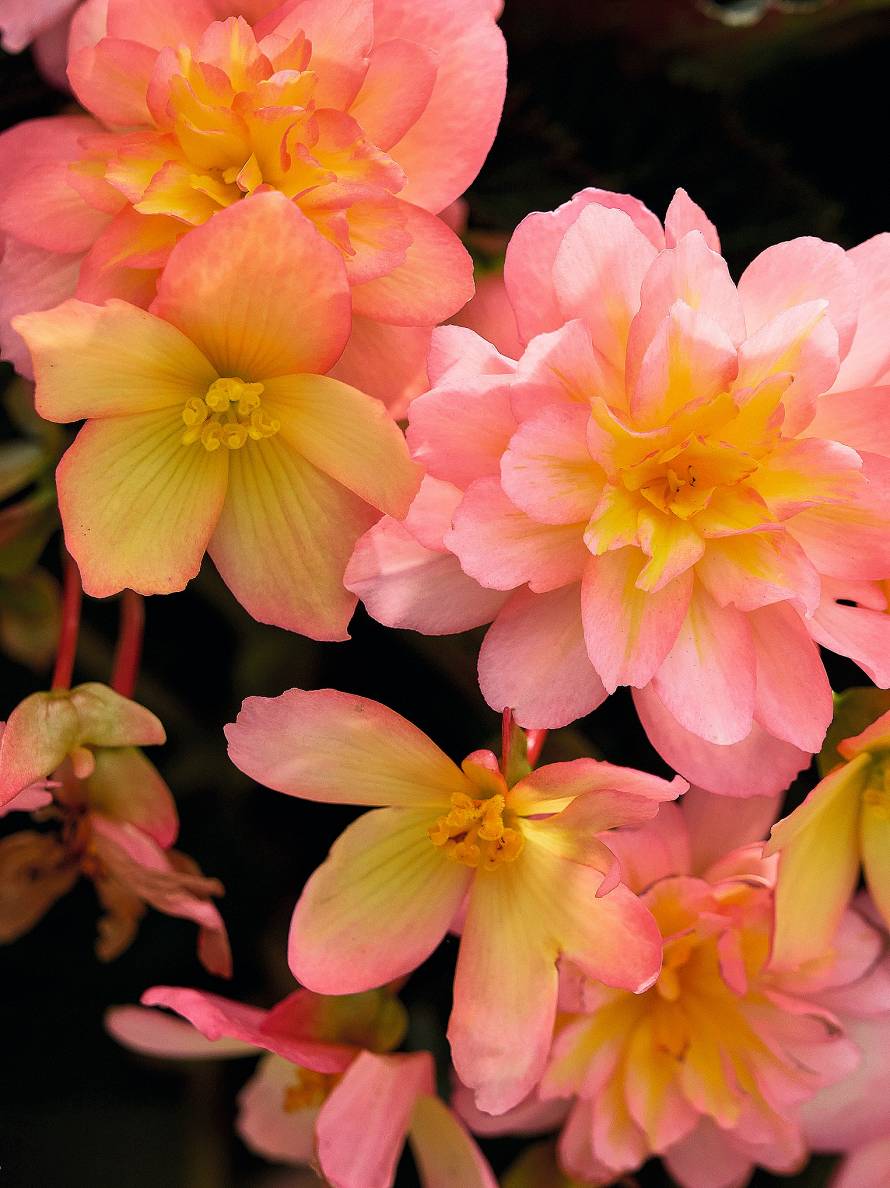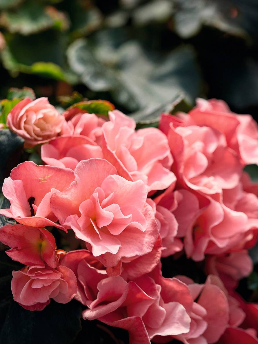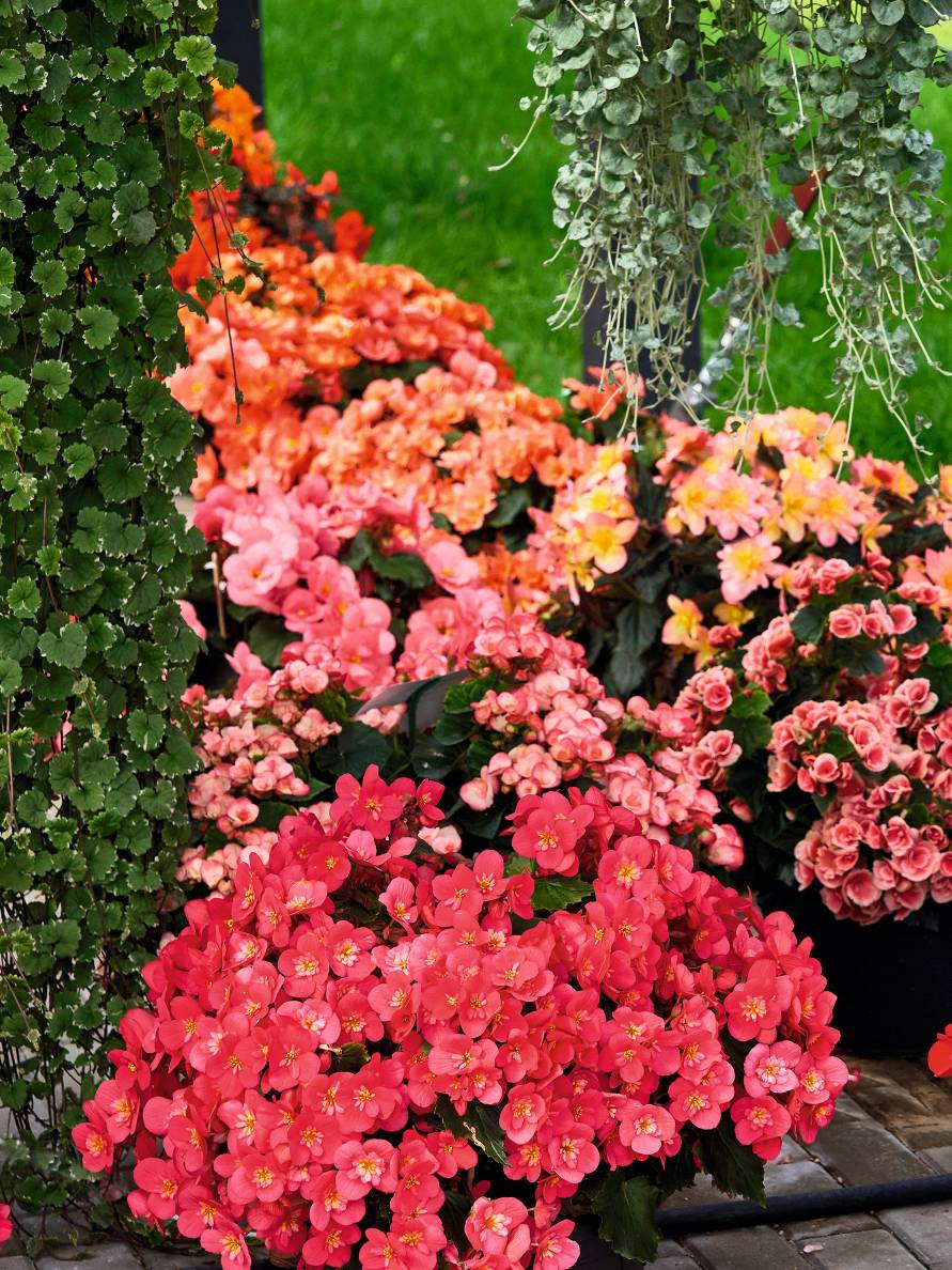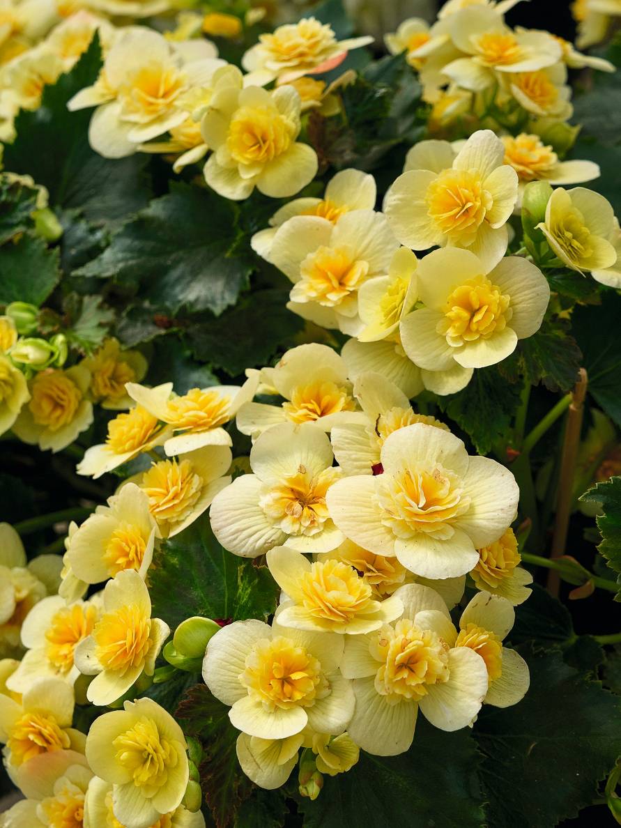 - Kamolbegonijas – gan stāvas, gan nokarenas formas augi ar lieliem, krāšņiem ziediem. Tās audzē no gumiem vai sējeņiem. Gumus iespējams pārziemināt.