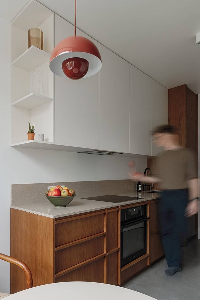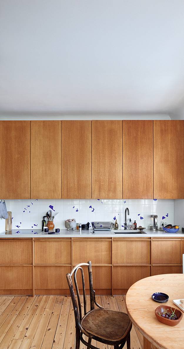 Arhitekte Marita Sīmane saviem klientiem projektējusi vizuāli tīru masīvkoka virtuves mēbeli ar filigrāni izstrādātām detaļām. Virsma – no kvarca.