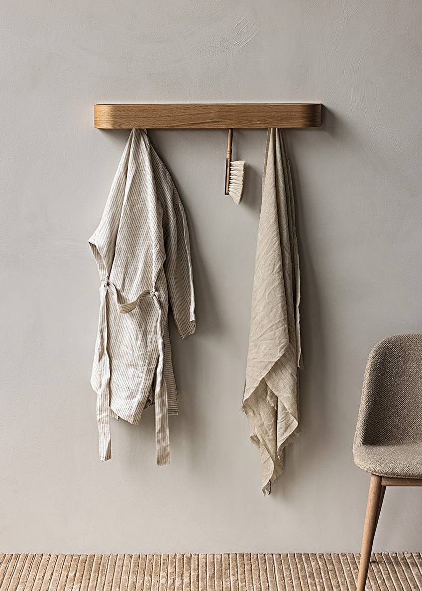 «Audo Copenhagen» – tā sevi pārdēvējis dāņu zīmols «Menu, turpinot piedāvāt minimālistiski jaudīgu dizainu. Pakaramais ar plauktu «Epoch Rack» (diz. Nina Bruun), 170 €, «Audocph.com».