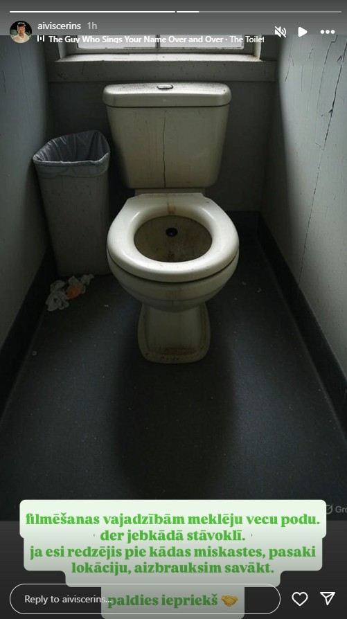 Pasākumu, šovu un raidījumu vadītājs Aivis Ceriņš sociālajos tīklos vērsies pēc palīdzības pie saviem draugiem un sekotājiem. Šoreiz viņam ir ļoti neparasta vajadzība. Aivis meklē… vecu tualetes podu! Turklāt – jebkādā stāvoklī. «Ja esi redzējis pie miskastes, pasaki, aizbrauksim savākt!» aicina Aivis. Šāds brīnums viņam esot vajadzīgs filmēšanas vajadzībām.