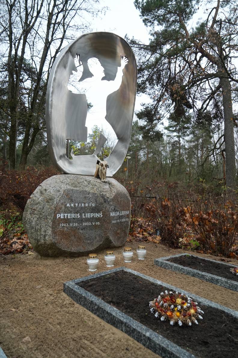 Šovasar Liepiņu pārim izveidota skaista piemiņas vieta. Dailes teātra aktierim uzstādīts iespaidīgs piemineklis, ko var pamanīt jau iztālēm. Oriģinālās skulptūras autors ir tēlnieks Ģirts Burvis. Viņš norāda, ka to veidojot, iedvesmojies no fotogrāfijas, kurā aktieris Pēteris Liepiņš redzams izrādē Dullais Dauka, iemiesojot vienu no viņa spilgtākajām lomām – mūžīgo sapņotāju un meklētāju Dauku.