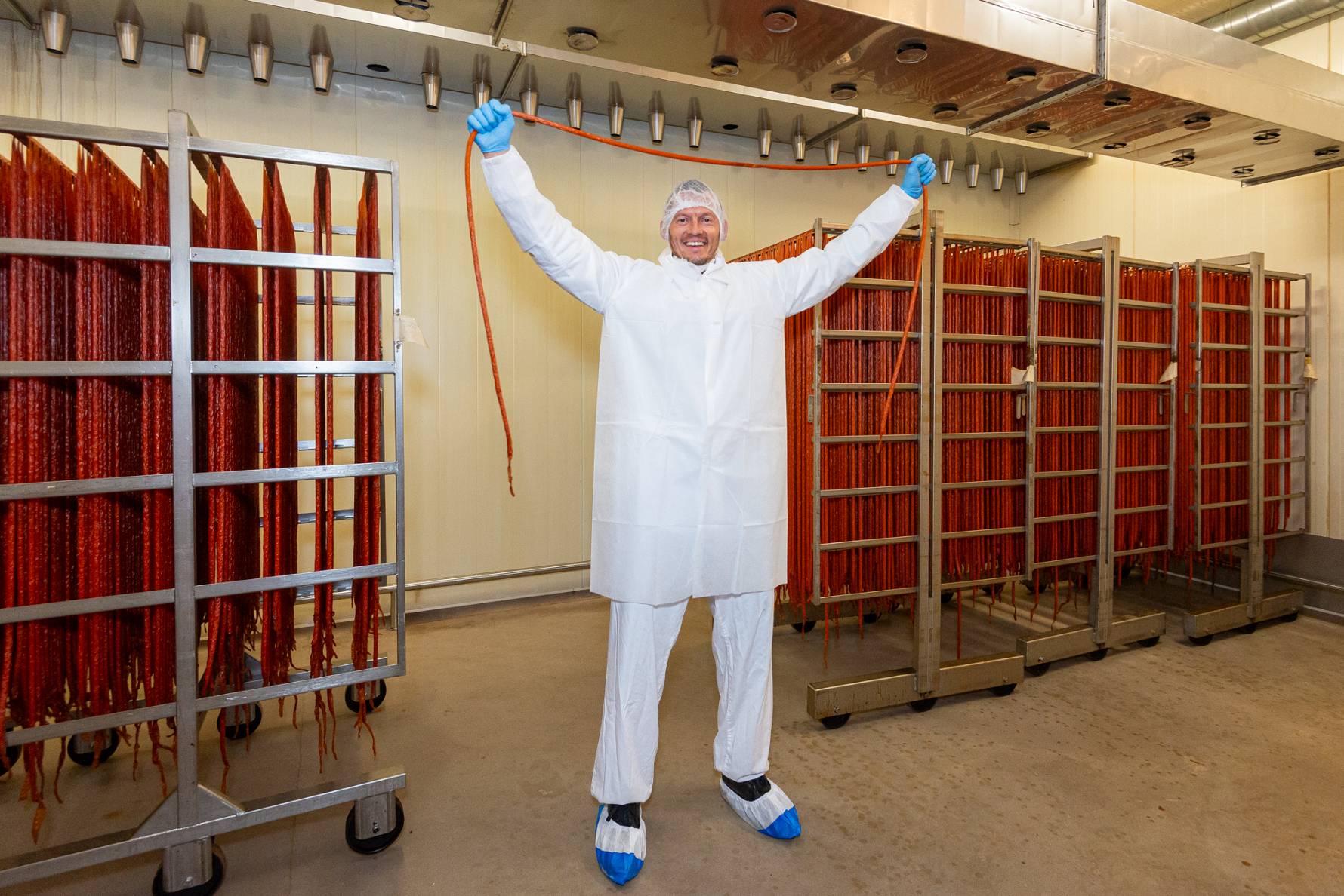 Darbs, lai izstrādātu recepti, atrastu pareizo izmēru un izveidotu iepakojuma dizainu, bijis gana sarežģīts. Pētīti Amerikas paraugi, tapuši vairāk nekā 20 varianti, līdz izvēle krita par labu divu veidu uzkodām – vistas un liellopa desiņas. «Pieslēdzu procesam arī sievu. Protams, Roberts, kad atbrauca ciemos no Amerikas, bija ražotnē. Garšojām, vērtējām, daudz tika strādāts, lai desiņas būtu ne tikai proteīna bagātas, bet arī garšīgas, sulīgas un mīkstas,» tā Blūms.
