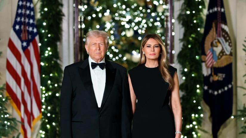 55 gadus vecā Melānija Trampa Ziemassvētku fotosesijai izvēlējusies melnu, garu kleitu, un koptēlu papildinājusi ar pērļu auskariem un briljanta rokassprādzi. Savukārt 79 gadus vecais Donalds Tramps tērpies klasiskā melnā smokingā. Lai gan abi ir sadevušies rokās, un tas Trampu attiecībās nav novērojams bieži, ASV pirmais pāris rada visnotaļ drūmu iespaidu. Viņu sejas izteiksmes nebūt neliecina par Ziemassvētku gaišumu un priecīgu prātu svētku atmosfērā. Drīzāk šķiet, ka Trampi saposušies uz bērēm.