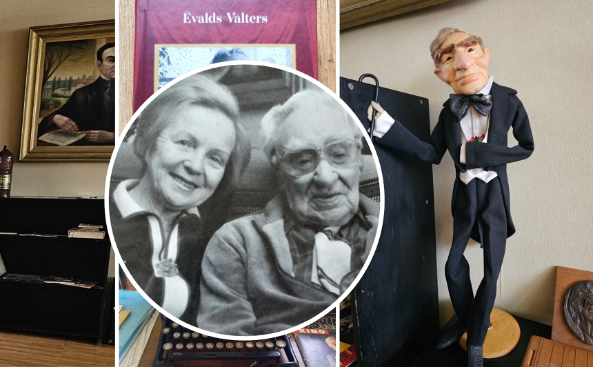 Pirms diviem gadiem Ēvalda Valtera dēls Raits piezvanīja Kurmāles pagasta vadītājai Dacei Gūtmanei un jautāja – vai tēvs var atgriezties dzimtajā pagastā? Viņa, ne mirkli nedomājot, teica – jā. Kad Raits atveda vecāku mantojumu, kas kādu laiku bija stāvējis Īvandes muižā, pamestā laulību zāle atguva jaunu elpu. «Nolēmām, ka gar vienu sienu izliksim Ēvalda Valtera grāmatas un piemiņas lietas, bet gar otru – Veras Gribačas mantojumu. Grāmatu skapji ir atvesti no mākslinieku Rīgas dzīvokļa. Abās sekcijās ir ap četriem tūkstošiem grāmatu. Tās rindoju tā, lai telpā radītu mājas atmosfēru, – plauktos ir gan akurāti sakārtotas grāmatas, gan slīpi un kaudzītēs salikta lasāmviela. Pēc uguns nelaimes Valteru dzīvoklī daudzas grāmatas sadega, un te var apskatīt tās, ko izdevās izglābt. Brīnījos, vai Ēvalds Valters tās visas ir izlasījis, taču, šķirstot grāmatas, redzu, ka aktieris vērtīgāko ir pasvītrojis ar zīmuli, pierakstījis savas domas, pielicis jautājuma un izsaukuma zīmes. Šeit, pēdējā plauktā, ir grāmatas franču, vācu, poļu, lietuviešu valodā. Aktieris labi pārzināja franču, vācu, angļu valodu, tulkojot strādāja ar vārdnīcām. Bibliotēkā ir valodnieka Kārļa Mīlenbaha vārdnīcas. Man vērtīgākie šķiet Latvju dainu sējumi vecajā drukā, kas izdoti pirmās Latvijas brīvvalsts laikā. Bibliotēkā ir arī grāmatas par dārzniecību, ko viņš studējis. Viņš ļoti mīlēja dabu.»