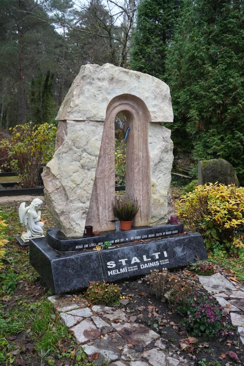 Folkloriste un lībiešu kultūras pārstāve Helmī Stalte mūžībā devās 2023. gada vasarā un ir apglabāta Meža kapos Jaunajā mākslinieku kalniņā blakus vīram Dainim Staltam. Pārim uzstādīts piemineklis, kas veidots no laukakmens un pulēta granīta, tajā iegravēti vārdi lībiešu un latviešu valodā: «Es esmu līvs, mana tauta ir mans gods.»