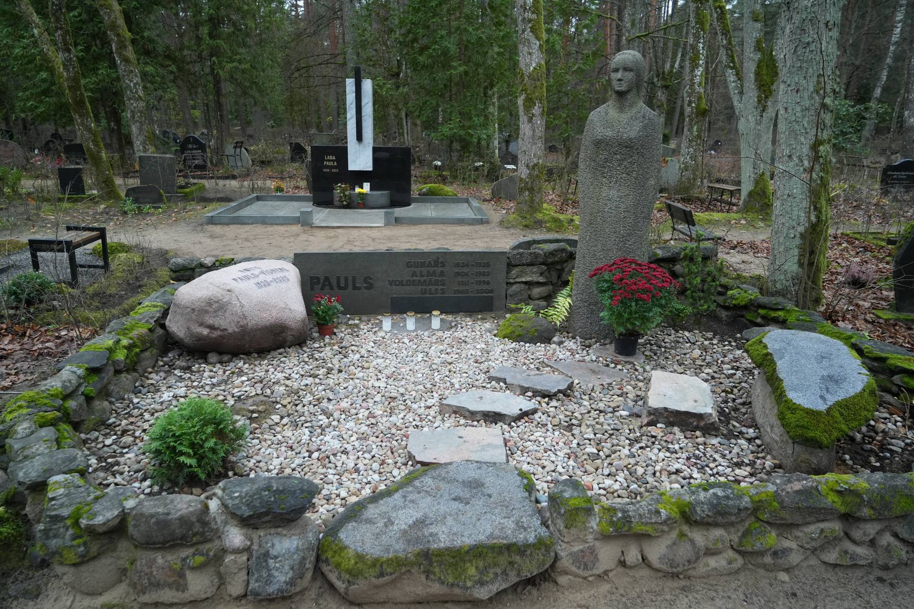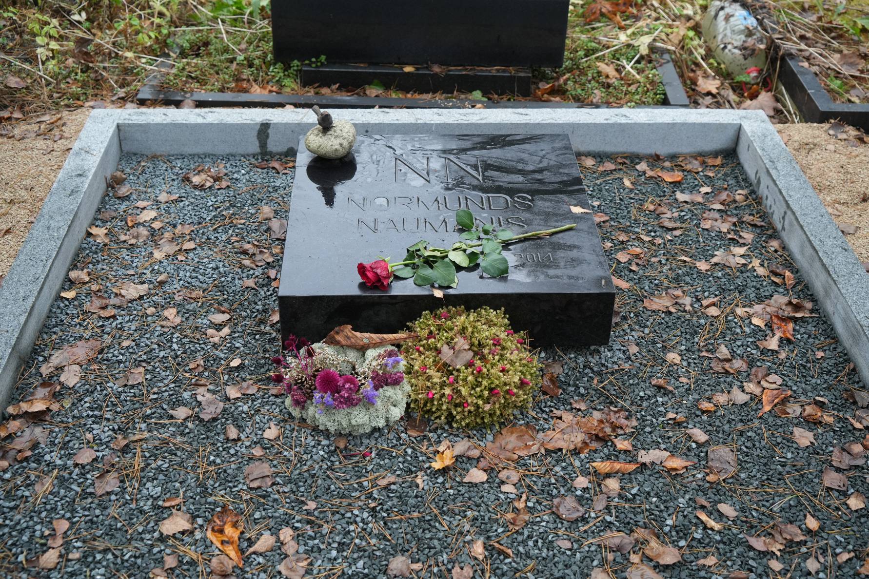 Teātra un kino kritiķa Normunda Naumaņa atdusas vietā Meža kapos veikti uzlabojumi. Vēl nesen kapu plāksni klāja mākslinieciskas efejas, nu tās novāktas, un plāksni ieskauj apmalīte. Parādījusies arī kāda detaļa – neliels pulēts akmens, uz kura sēž putniņš. Tas, pretstatā smagajam akmenim, piemineklim piešķir vieglumu un dzīvību. Vizuāli arī rada sajūtu, ka nāve nav gals, bet pāreja uz citu pasauli.