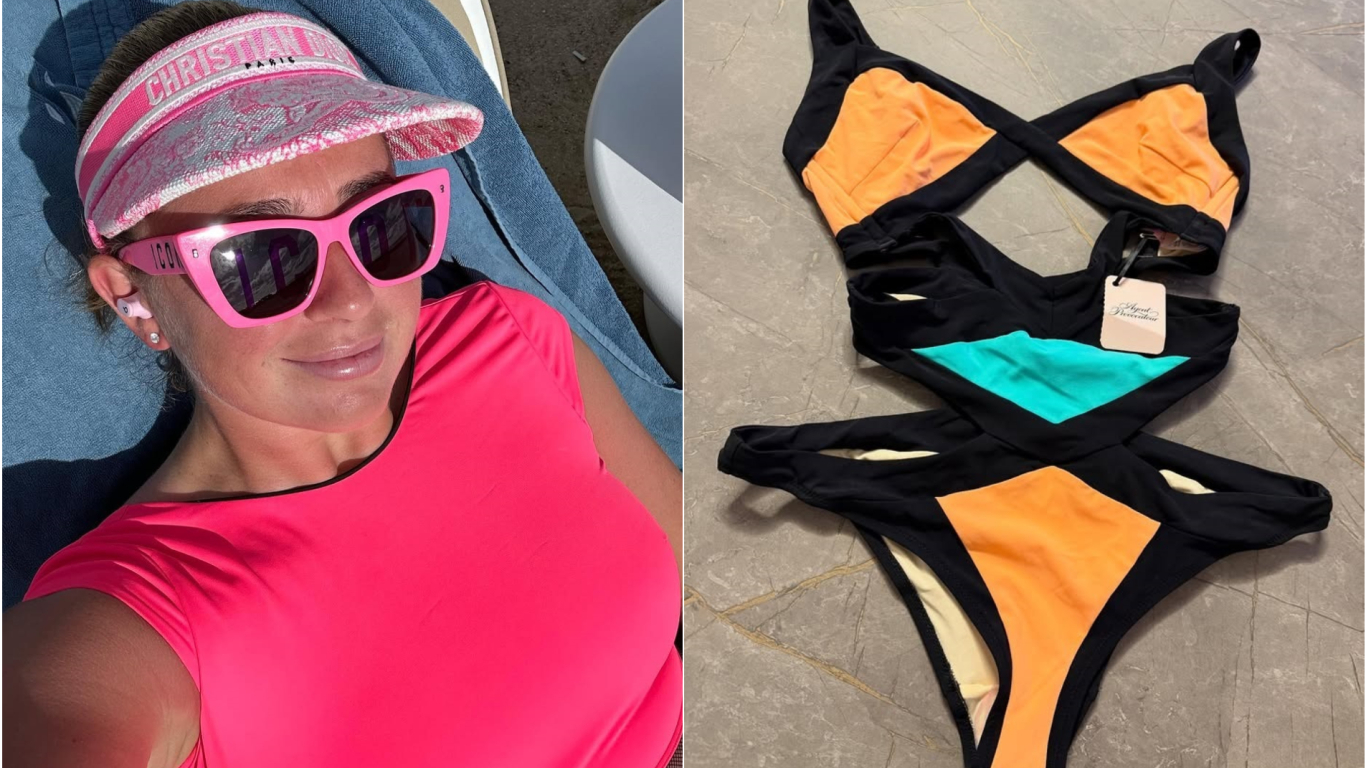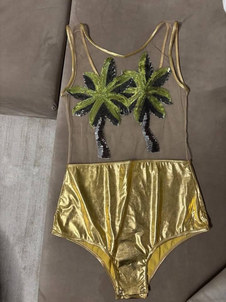 Aļona gatava pārdot arī gluži jaunu zīmola Brigitte peldtērpu, kura krūšu daļu rotā fifīgas palmiņas. Tas maksā 130 eiro, bet Ostapenko par šo kostīmu gribētu saņemt 50 eiro.