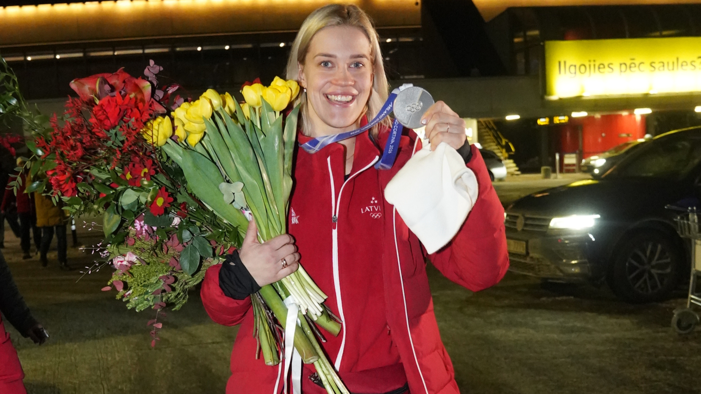 Pēc pusstundu pacietīgas gaidīšanas otrdienas pusseptiņos vakarā vērās E atlidošanas zāles durvis un, sanākušo ovāciju pavadīta, nāca viņa – Milānas un Kortīnas ziemas olimpisko spēļu vicečempione kamaniņu sportā Elīna Ieva Bota. Turot rokās sudraba medaļu, viņa vēlāk atzina – tā esot diezgan smaga, sverot bez 100 gramiem puskilogramu! «Nākot iekšā lidostā un redzot visapkārt tik daudz cilvēkus, sajūtas ir vienreizējas,» atzina Elīna, kura neslēpa – visvairāk alkstot beidzot iegulties savā gultā un mazliet atpūsties. Kopā ar olimpisko čempioni Latvija ieradās arī viņas vīrs kamaniņu braucējs Mārtiņš Bots, ar kuru Elīna šogad svinēs 10 gadu kopā būšanas jubileju. «Man ir milzīgs prieks par sievu.