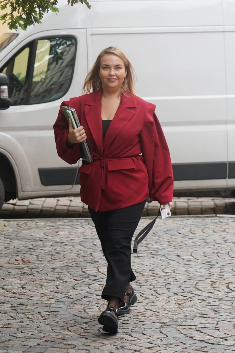«Modes tendencēm ļoti atbilstoši – klasiska, palielināta vīriešu žakete uzvilkta kopā ar kupla izmēra biksēm un sporta apaviem. Sievišķības akcentēšanai aplikta josta. Soma ir uzkrītoši ļoti liela. Šāds komplekts vairāk piestāv lielpilsētas dīkdienēm, kas nodarbojas ar ārišķīgām lietām bez ļoti dziļa iekšēja satura. Par to liecina kaut vai izvēlētās sporta čības, kas, ilgas stundas strādājot, ir paši neērtākie apavi, it īpaši sēžot. Deputāte noteikti vēlas, lai gaidāmais darba periods paiet vienā skrējienā.»