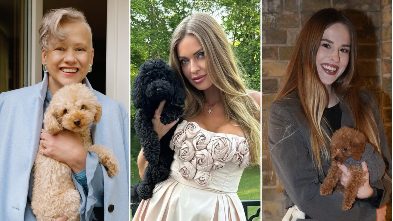 Miljonāra Oļega Fiļa nu jau bijušās draudzenes Kristīnes Jelinskas aprūpē ir pat divi piemīlīgi toipūdelīši – brūns un melns. «Man patīk pūdeļi gan izskata, gan rakstura ziņā, un mīlestība, ko tie sniedz, ir neaprakstāma,» savu izvēli par labu šai šķirnei žurnālā Privātā Dzīve skaidro Kristīne. Pirmā viņas ģimenē ienāca brūnā Mollija, bet pēc dažiem gadiem viņai pievienojās melnā Luna.