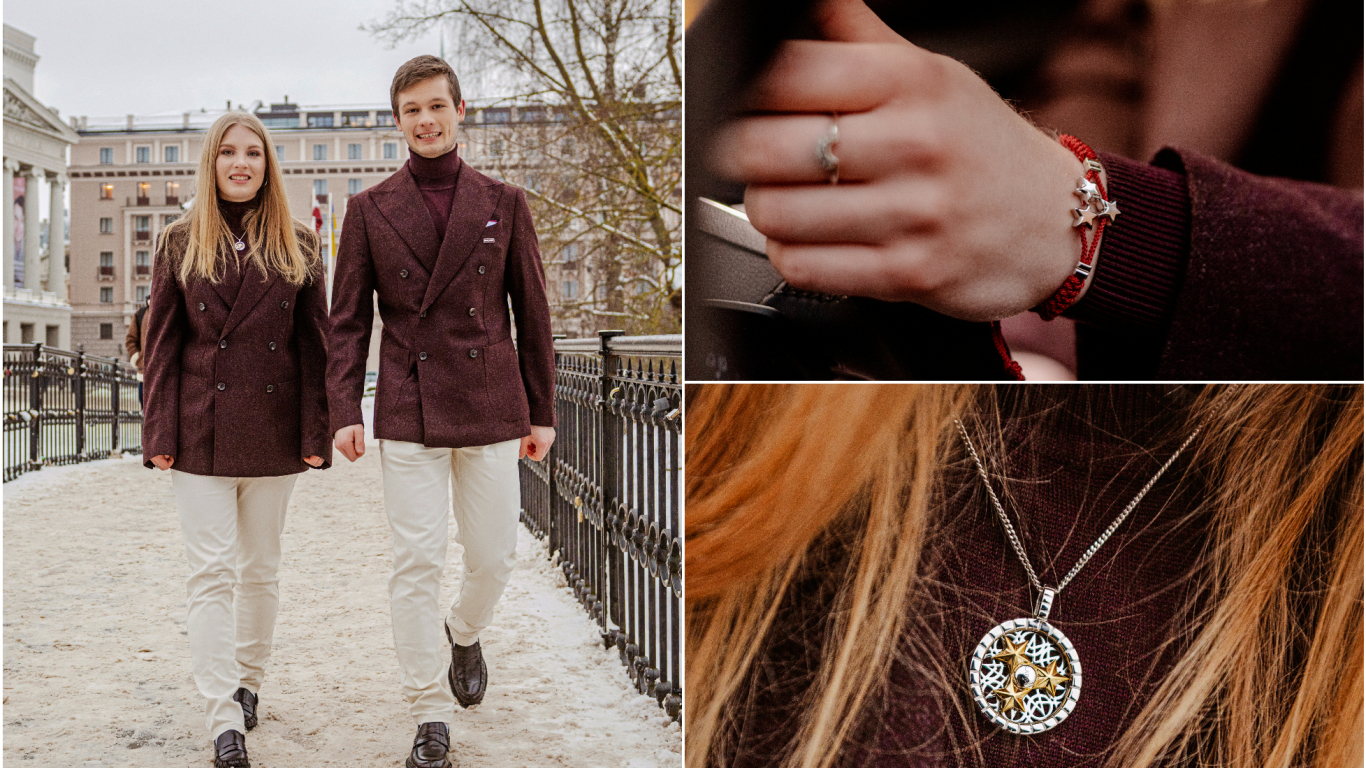 Koptēlu papildinās īpaši izvēlēti akcenti. Latvijas juvelierizstrādājumu zīmols Given iadījis unikālas, gan vīriešiem, gan sievietēm piemērotas aproces ar sudraba trīs zvaigžņu simboliku, kas atspoguļo Latvijas identitāti un piederību Komanda Latvija. Savukārt sieviešu tērpu komplektu papildus akcentēs lakatiņš ar latvisku rakstu.