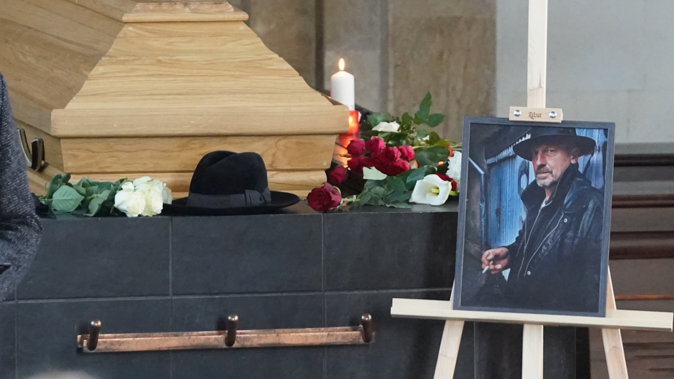 Krematorijā sestdien pulcējās vairāki desmiti cilvēku – Kleina draugi, kolēģi, talanta pielūdzēji. Pie Kleina zārka bija novietots viņa portrets, savukārt šķirsta kājgalī – māksliniekam tik raksturīgā melnā platmale. Atvadu ceremonijā sirsnīgus atvadu vārdus tēvam veltīja viens no viņa dēliem – Kristaps Kleins.