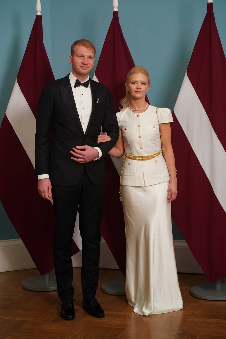 Kungam pareizi izvēlēts smokings ar atbilstošu kreklu un lakādas apaviem. Pavadone izskatās svinīgi – blūze saskan ar svārku krāsu, svārku garums atbilst etiķetei. Rotas un aksesuāri labi saskaņoti. Nekā nav par daudz!