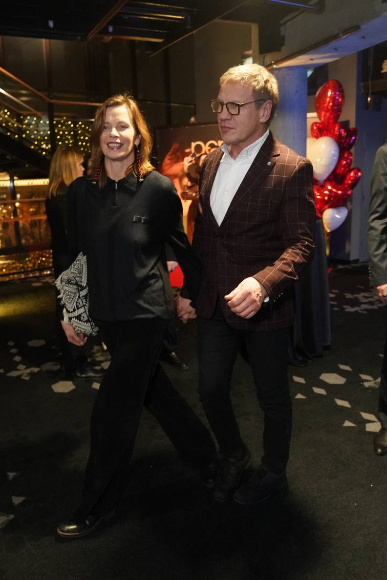 Andris Ozols uz filmas Perfektie pirmizrādi ieradās, rokās sadevies ar kādreizējo modeli, miljonāra Ainara Gulbja atraitni Unu Gulbi-Kārkliņu.