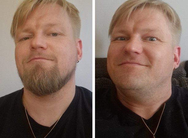 taču spriež – bez bārdas spogulī izskatās 10 gadus jaunāks un arī kādus 10 kilogramus smagāks.