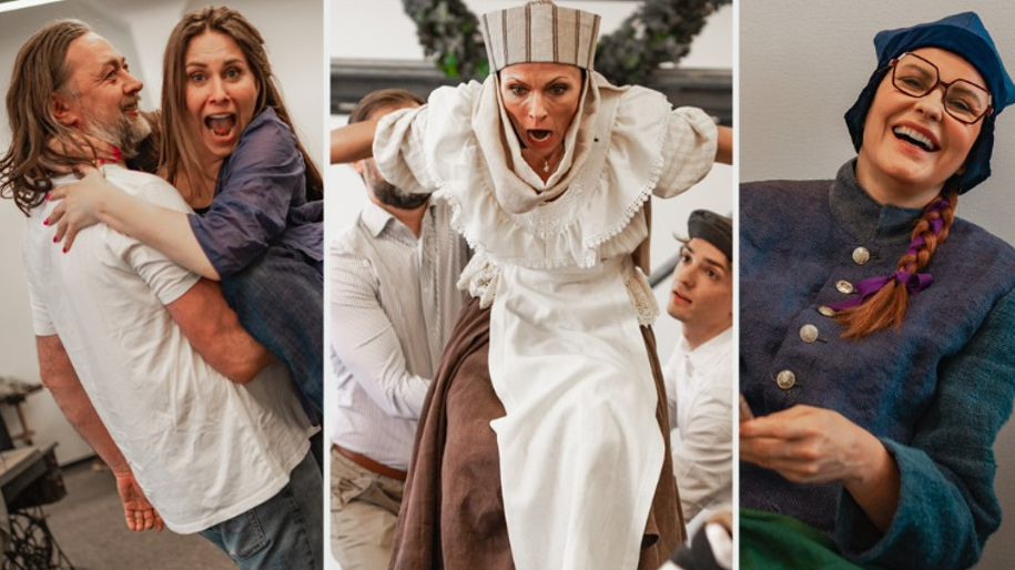 Trešdienas vakarā ar smiekliem, jokiem un Silmaču cienīgām dzīrēm aktieri iesildījās izrādei «Skroderdienas Silmačos» un nosvinēja Annas Klēveres dzimšanas dienu.