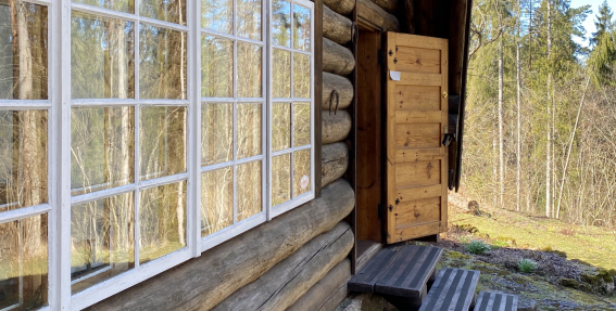 Es apsēžos pie galda istabiņā, kur sienas augstu virs galvas satiekas trijstūrī, un izvelku vienu no strīpainajām zoss spalvām. Priekšā tieši aiz lielajiem logiem šūpojas egles, bet sānos gar sijām sasprausti plakāti – seni koncerti, Brīvdabas muzeja gadatirgus, Dailes teātra izrāde… Uz grīdas no Imanta tēva zvejas tīkliem austa grīdsega.