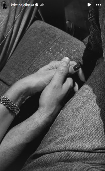 34 gadus vecā Jelinska, kuras attiecības ar muižkungu beidzās, jo viņš tā arī nesaņēmās romānu noformēt juridiski, sociālajos tīklā saviem 14 tūkstošiem sekotāju parādījusi sirsnīgu kadru – viņa sadevusies rokās ar kādu vīriešu kārtas pārstāvi.