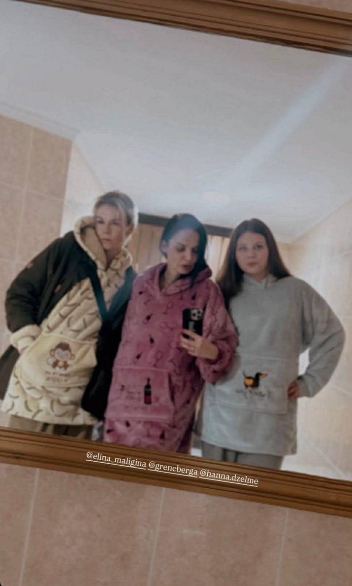 Vecgada vakarā Grencberga publiskoja fotogrāfiju – tērpusies plīša pidžamā, viņa tajā redzama kopā ar Elīnu Maliginu un Dž. Dž. Džilindžera meitu Hannu.