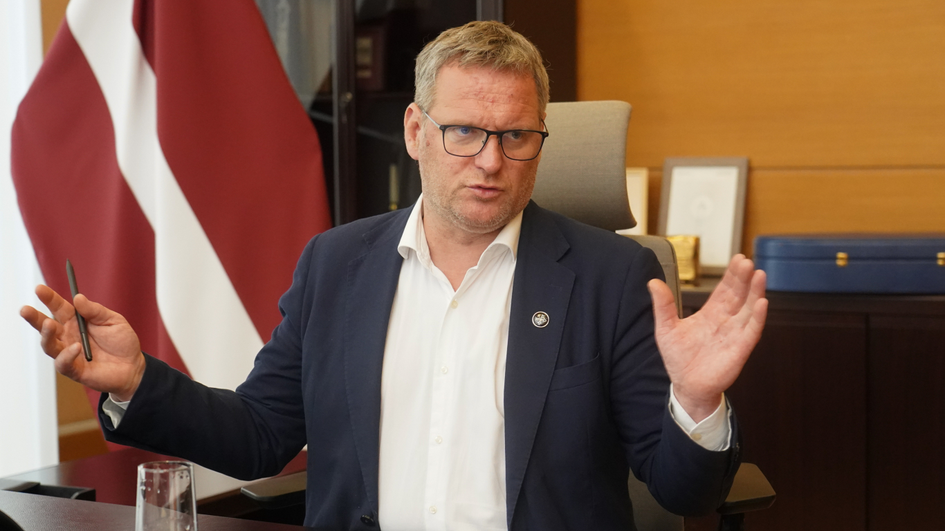 Nomainīju karogu. Sakārtojām valsts simboliku, jo pamanīju – karogs neatbilst tam, kāds noteikts diplomātiskajā protokolā, kuru apguvu pirms 25 gadiem pie Irmas Kalniņas. Atgriezāmies arī pie tā, ka birojā lietojam nevis ūdeni pudelēs no veikala, bet gan Rīgas ūdens piegādāto krāna ūdeni, kas saliets karafēs. Un vēl man uz galda ir trīs privātās fotogrāfijas. Viena no manām kāzām, tur esmu ar sievu. Tad ir bilde, kurā redzams, kā vēlēšanās eju balsot savā dzimtajā Natālijas Draudziņas vidusskolā. Trešo man uzdāvināja kolēģi – esmu pieķerts priekšvēlēšanu laikā. Devos no vienas tikšanās uz otru, piestāju pie mūsu partijas aģitācijas telts.