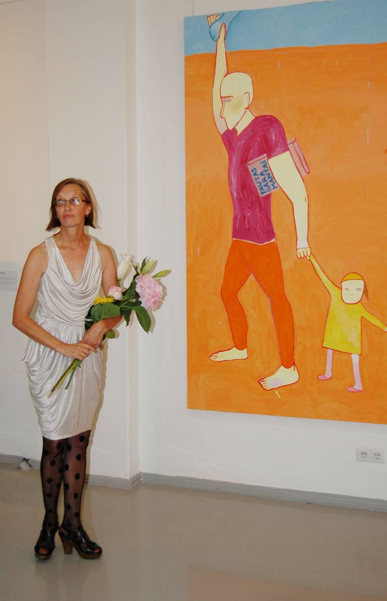 Glezna Viņš un viņa. Robusti zīmēts vīrietis un sieviete. Vienīgais krāsu laukums – sārts vīrieša torss. Sievietes sejai nav acu, ir tikai lūpas, vīrietim – vienīgi acis. Erotisks simbols, kas iedarbojas uz zemapziņu. Klusā daba ar vāzi – smaga no košo krāsu blīvuma. Vāze kā zīme, tulpe kā zīme. Poētiski skumjā glezna Eiropas nolaupīšana 2 – dzeltens vērsis nes uz muguras iemigušu princesi Eiropu.