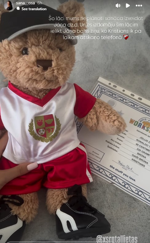 «Vakar izveidojām šādu rotaļu lācīti un zīmīgi, ka to izveidojām tieši 2. jūlijā, kas ir Jāņa dzimšanas diena. Man radās ļoti laba ideja, jo šajās mantiņās var ielikt balsi un to atskaņot – ierakstīt savu balsi vai kāda cita. Man radās ideja ielikt Jāņa balsi. Tā kā
