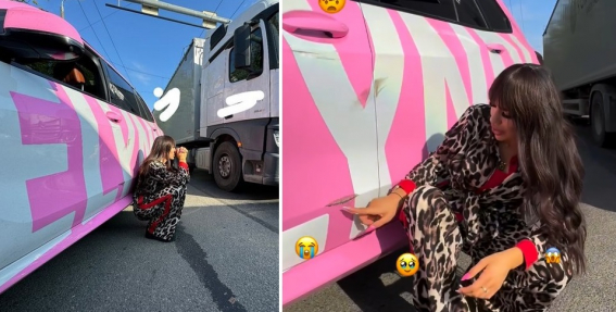 Šovasar Didrihsone jau iekļuva ceļu satiksmes negadījumā, kurā viņa rozā BMW sadūrās ar kravas auto.