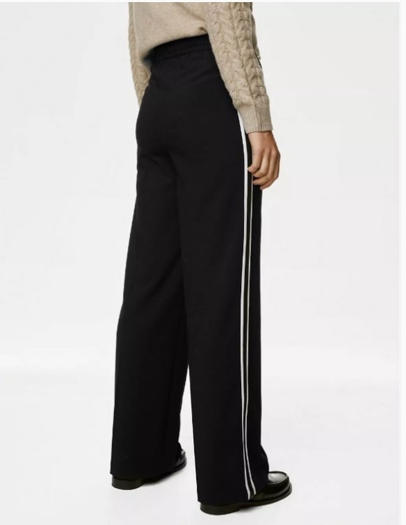 «Visas manas bikses ir darinātas no bikšu auduma, nevis treniņtērpu materiāla. Man vienkārši patīk šis stils,» uzver viņa un piebilst, ka šādu modeļu izvēle vizuāli slaidina kājas un padara garāku augumu.