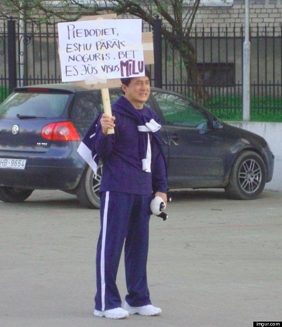 Čana vārds savulaik izskanējis arī saistībā ar Latviju. Pirms vairāk kā desmit gadiem aktieris ieradās Latvijā, lai Jelgavas vēja tunelī filmētu viņa filmas Ķīniešu Zodiaks epizodes. Ik dienas viņš vairāku stundu garumā sniedza autogrāfus un bija no tā tik noguris, ka vietējiem iedzīvotājiem bija uzzīmējis plakātu, kurā latviešu valodā ziņoja, ka ir noguris, tomēr visus mīlot.
