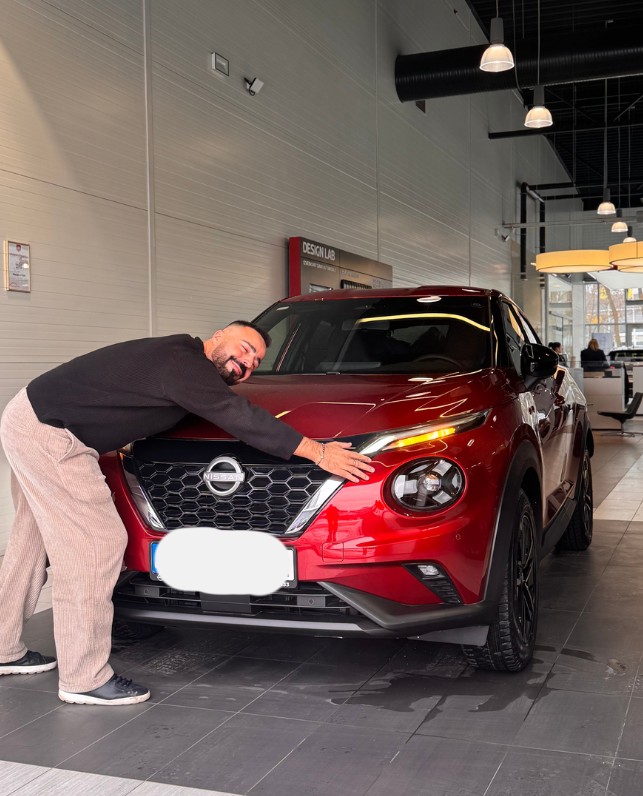 Roberto jau ticis pie jauna auto, un tas ir Nissan Juke. «Svārstījos vēl par Nissan Qashqai, bet Juke tomēr man uzreiz likās tāda fifīga. Man nepatīk lielas mašīnas. Esmu tomēr itālis, un mēs ar tādām nebraucam,» tā Roberto. Viņš zinājis arī, ka grib sarkanu mašīnu. «Kad man iedeva izbraukt ar Juke, līdzīgi kā bija ar Solvitu,