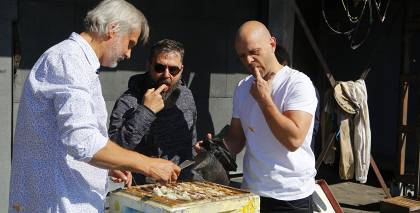 Šogad fonda kulturālo kartupeļu audzēšanu papildināja biškopība un bites, kurām lielu uzmanību savā daiļradē veltīja Imants Ziedonis. Urbānais bitenieks Uģis Mālnieks PDz pastāstīja – lauka vidū plānots izveidot bišu māju.