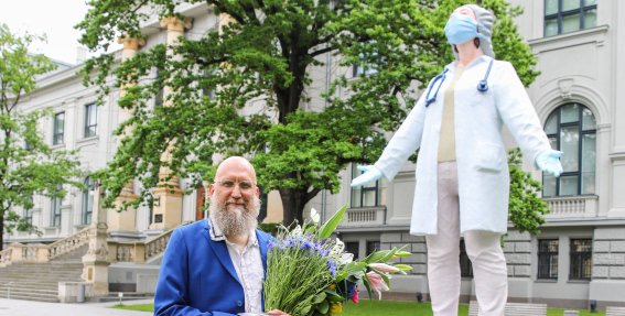 «Viņš ir pasaules biznesmenis, kas uzturas Latvijā,» piebilst Bikše. Visnotaļ jautra izvērtusies hermafrodīta transportēšana uz jaunajām mājām. «Nobildēju skulptūru pirms iepakošanas. Man šķita – tas bija efektīgi! Tomēr nebijām tik atraktīvi, ka nepiesegtu skulptūru vizinātu mašīnā pa visu pilsētu, lai gan tas būtu iespaidīgi,» pasmējās tēlnieks.