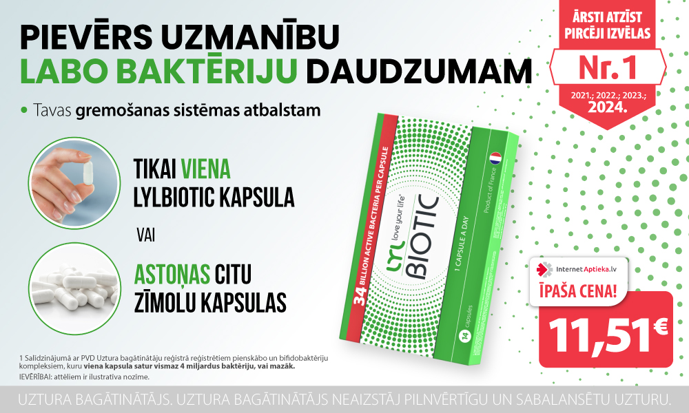 Nekad tādas neesmu lietojusi, neko daudz par tām nezinu, bet, iestājoties pavasarim, ir sajūta, ka vismaz piecus ziemas laikā uzkrātos kilogramus vajadzētu dabūt nost… Tāpēc nolēmu pamēģināt un devos taisnā ceļā uz aptieku. Farmaceite man piedāvāja pašmāju farmācijas zīmola LYL love your life® ražoto LYLBIOTIC, jo šis labo baktēriju komplekss ir ne tikai izstrādāts kopā ar ārstiem-gastroenterologiem, balstoties uz klīnisko un zinātnisko pētījumu rezultātiem, bet arī labo baktēriju kompleksā tikai vienā kapsulā, kas ir ražotāja noteiktā deva, ir iekļauts superliels baktēriju skaits – 34 miljardi. Farmaceite norādīja, ka liela ir arī baktēriju daudzveidība – 8 zinātniski pētītas baktēriju sugas un unikālās Saccharomyces boulardii rauga šūnas. Turklāt šīm kapsulām ir īpašs apvalks DRcaps™, kas garantē, ka baktērijas pa ceļam uz zarnām agresīvajā kuņģa pH vidē neaiziet bojā un dzīvas nonāk līdz zarnu traktam, kur tām ir jāiedzīvojas. Savukārt iedzīvoties tām palīdz barības viela – prebiotikas, kas arī ir iekļautas LYLBIOTIC sastāvā.