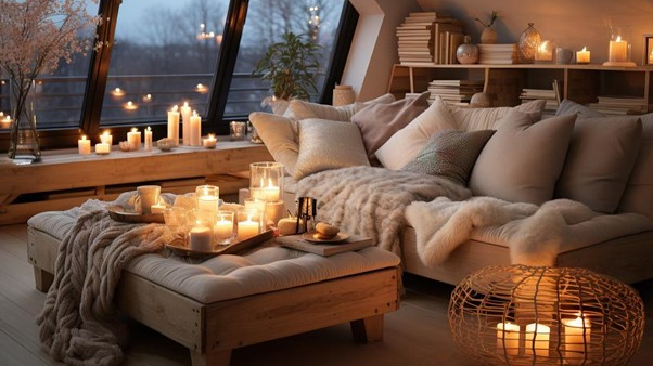 Silts vaniļas vai viegls citrusu aromāts, klusa mūzika, sveces – tas viss veido atmosfēru. Pat viena svaigu ziedu vāze piešķirs telpai dzīvīgumu un padarīs to vizuāli siltāku. Varat izslēgt lustras un iedegt dažas nelielas sveces, lai maiga gaisma mazinātu asus gaismas stūrus un radītu intīmāku noskaņu.