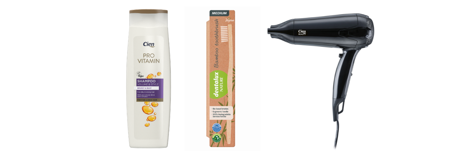 Tāpat ikdienas skaistumkopšanas rutīnu iespējams papildināt ar praktiskiem un pieejamiem risinājumiem no “Cien Beauty” produktu līnijas. Piemēram, Skaistuma festivāla laikā fēns ikdienas frizūru veidošanai pieejams tikai par 9,99 eiro, dažādi skaistumkopšanas piederumu komplekti par 1,99 eiro, savukārt manikīra un pedikīra komplekts lietošanai mājās – tikai par 14,99 eiro.