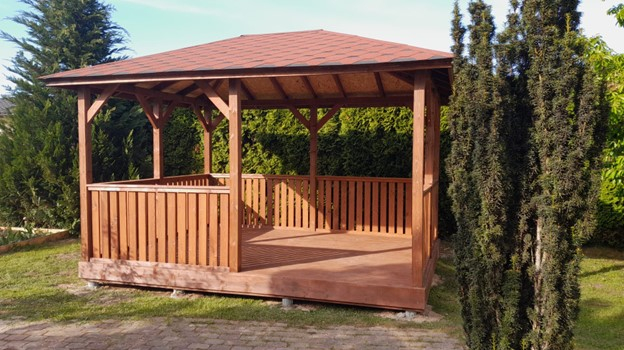 Koka nojumes un lapenes pieejamas dažādos izmēros – sākot no kompaktām konstrukcijām nelieliem dārziem līdz pat plašām 20–30 m² un lielākām zonām, kur ērti var novietot gan lielu galdu, gan grilu, gan atpūtas mēbeles. Tā ir iespēja izveidot pilnvērtīgu āra viesistabu.