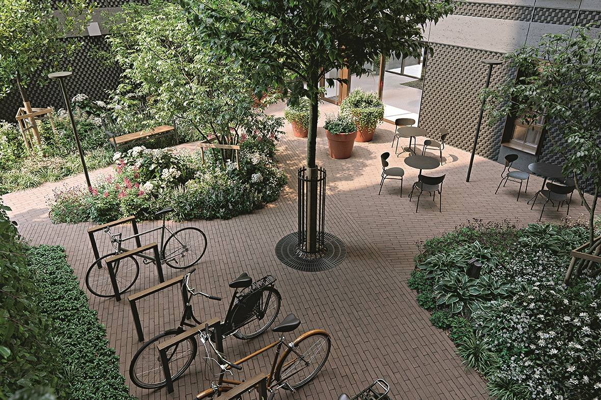 Lielākajai daļai dzīvokļu ir plaši balkoni, bet pirmajā stāvā – privātas apzaļumotas terases ar tiešu piekļuvi pagalmam. Tā ir slēgta, labiekārtota atpūtas zona ar daudzveidīgiem, rūpīgi izvēlētiem apstādījumiem – kokiem, krūmiem un ziedošiem augiem –, kas nodrošina vizuālu pievilcību un mierpilnu vidi visu gadu.