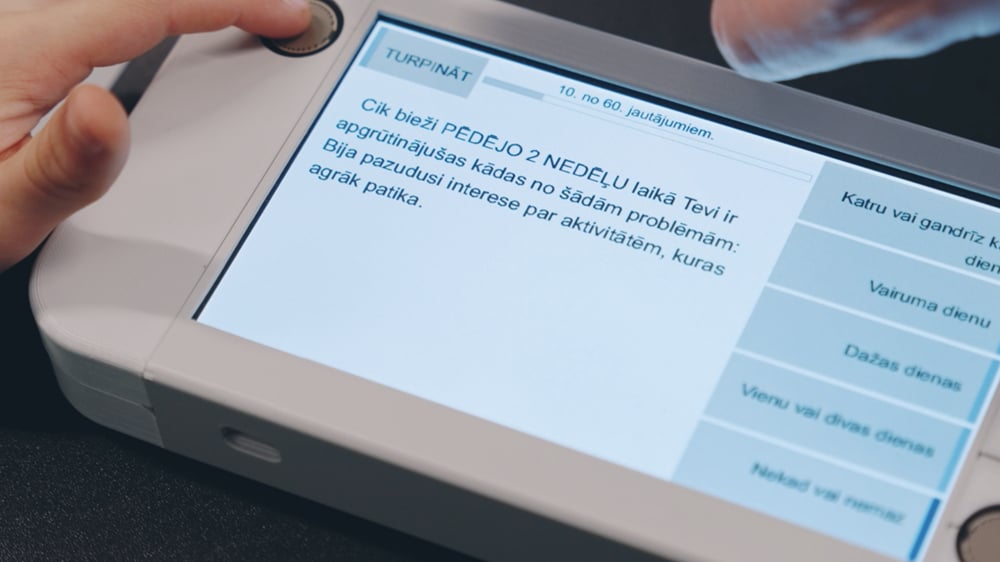 Pirmā – pati ierīce, speciāla planšete, ko izstrādā RTU zinātnieki. Pusaudzim ar to darbojoties, planšete mēra dažādus fizioloģiskus parametrus un sasaista tos ar psihiskās veselības rādītājiem. Ierīce fiksē psihofizioloģiskos mērījumus, piemēram, cik ātri pusaudzis pieņem lēmumu atbildēt un cik spēcīgi nospiež atbildes pogu. Šie ir parametri, kas var liecināt par spriedzi, impulsivitāti vai izvairīšanos no konkrētiem jautājumiem.