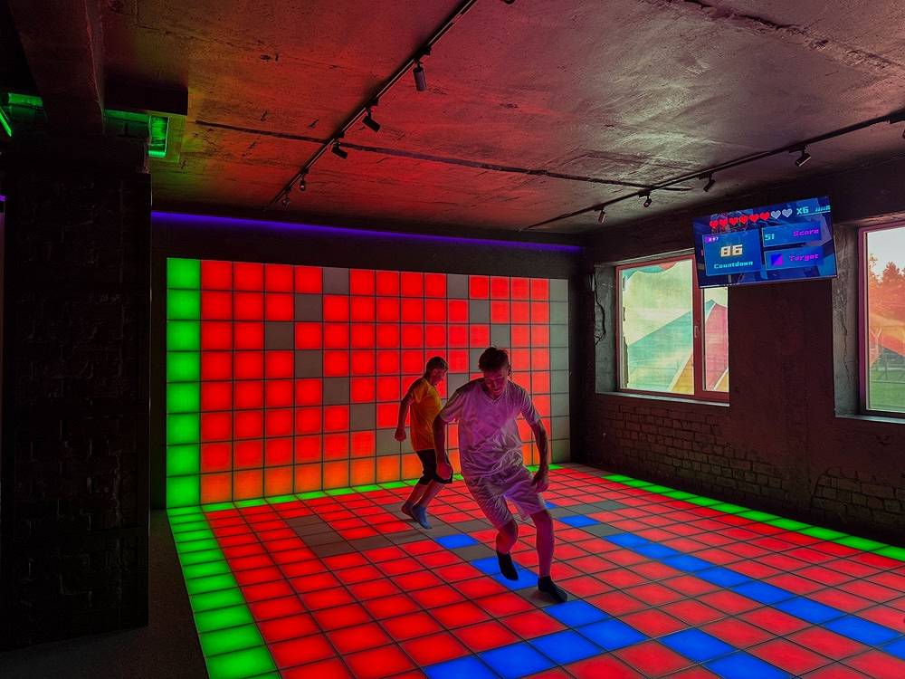 - Pikseļu istaba – unikāla izklaides telpa ar interaktīvu LED grīdu, kas reaģē uz kustībām un pārvērš spēli par aizraujošu izaicinājumu;