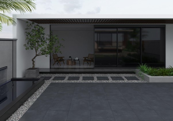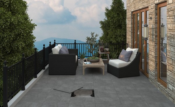 - Terase: Parasti atrodas uz zemes vai virs neapdzīvotām telpām. Tā ir pakļauta maksimālai slodzei – smagas mēbeles, grils, mainīgi laika apstākļi. Šeit dominē 20 mm biezās akmens masas flīzes, kuras var klāt, izmantojot speciālus regulējamus balstus, likt uz šķembām vai pat zālāja. Tas novērš mitruma uzkrāšanos un ļauj konstrukcijai «elpot».