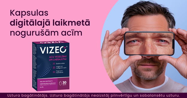 Tāpat ir vērts atcerēties, ka acu labsajūtas profilakse nav luksuss, bet gan ikdienas nepieciešamība. Atbalstam digitālajā laikmetā uzticams sabiedrotais ir VIZEO kapsulas. Tās ir radītas, lai rūpētos par acu labsajūtu, palīdzot mazināt nogurumu un saglabāt skaidru redzi palielinātas slodzes apstākļos. To sastāvā ir karotinoīdu komplekss ar luteīnu, zeaksantīnu un beta karotīnu, augstas koncentrācijas melleņu ekstrakts, kā arī cinks un B2 vitamīns. Šīs sastāvdaļas ne tikai palīdz mazināt acu nogurumu, bet arī aizsargā tīkleni no oksidatīvā stresa un zilās gaismas kaitīgās ietekmes.