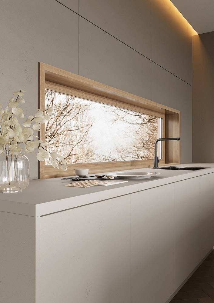 Monohromātiskas virtuves ir tendence, kas 2026. gadā sasniedz savu briedumu. Tā balstās uz vienotas krāsas un apdares saglabāšanu visos iebūves elementos – no fasādēm un darba virsmām, līdz līstēm, apmalēm un uzglabāšanas sistēmām, piemēram, žalūzijām.
