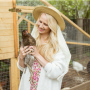 Rūta savā piemājas teritorijā ir izveidojusi īpaši smalku vistu kūtiņu – tur netrūkst pat aizkaru un ziedu. Apraudzīt savus mājputnus viņa dodas samta kostīmiņā. «Jā, manas vistas un siltumnīca ir pelnījušas manis labāko versiju,» atzīst Rūta. Viņa gan piebilst, ka dēstus siltumnīcā mēdz laistīt, arī tērpusies vienkāršās treniņbiksēs. «Pandēmijā man nav, kur iziet samta tērpā, tādēļ šādi saģērbjos pati savam priekam. Žēl, ka zīmola Garden Girl gaumīgā angļu cottage stilā vairs nav, bet mani gumijnieki ir pieredzējuši daudz.»