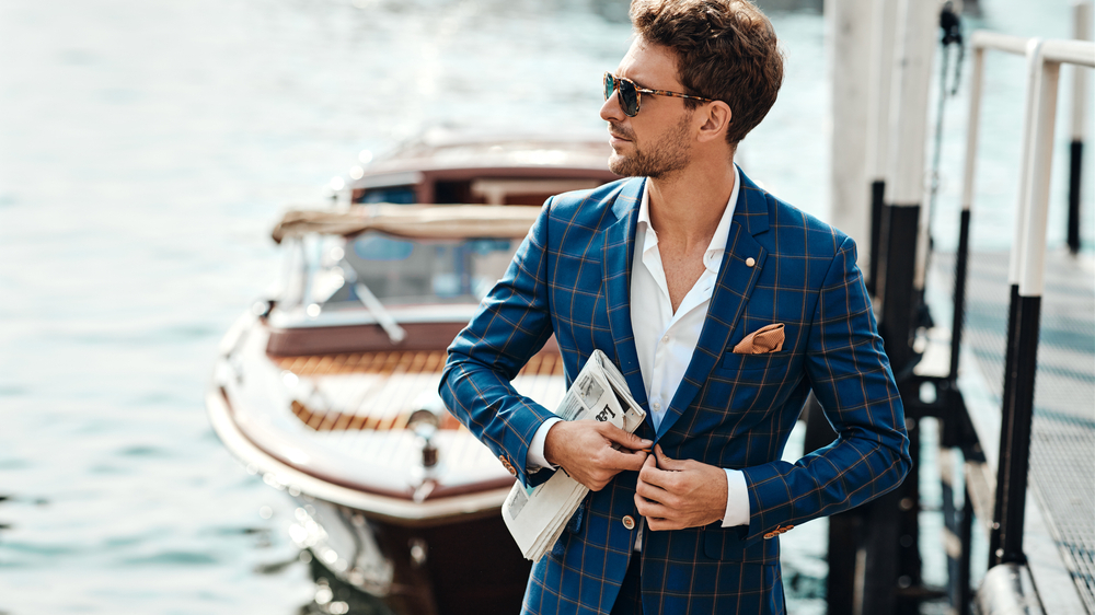 Žakete vai uzvalks.Tumši zils kostīms būs universāls gan formāliem pasākumiem, gan svinībām. Ar aksesuāriem un apaviem var radīt dažādus tēlus. Ar T kreklu un sporta apaviem – modernu, relaksētu izskatu, savukārt ar klasisku balto kreklu, kaklasaiti un elegantām kurpēm – izsmalcinātu.