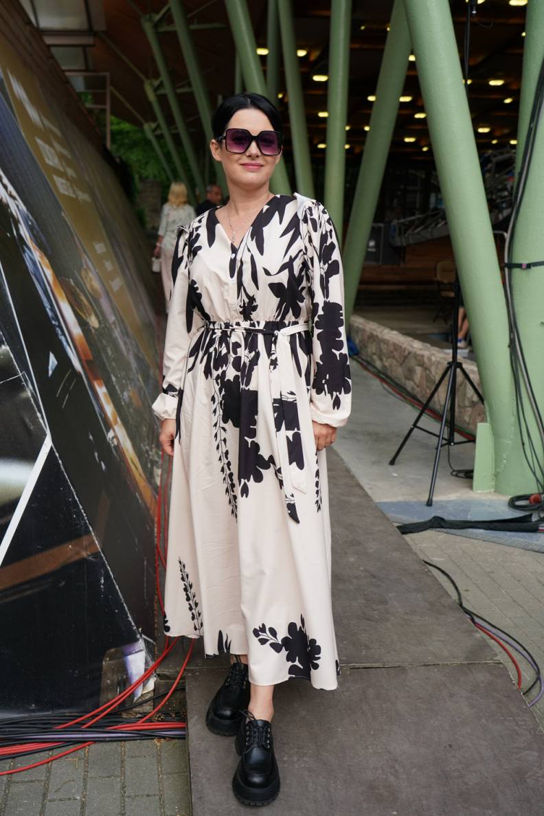 Jūlija Zolberga: Melnbaltās kleitas ar grafisko ziedu rakstu šobrīd ir ļoti aktuālas, un man patīk Antras izvēle, kombinējot to ar apaviem uz masīvas zoles. Arī matu sakārtojums izvēlēts ļoti veiksmīgi. Koptēls ir lakonisks, taču pamanāms.